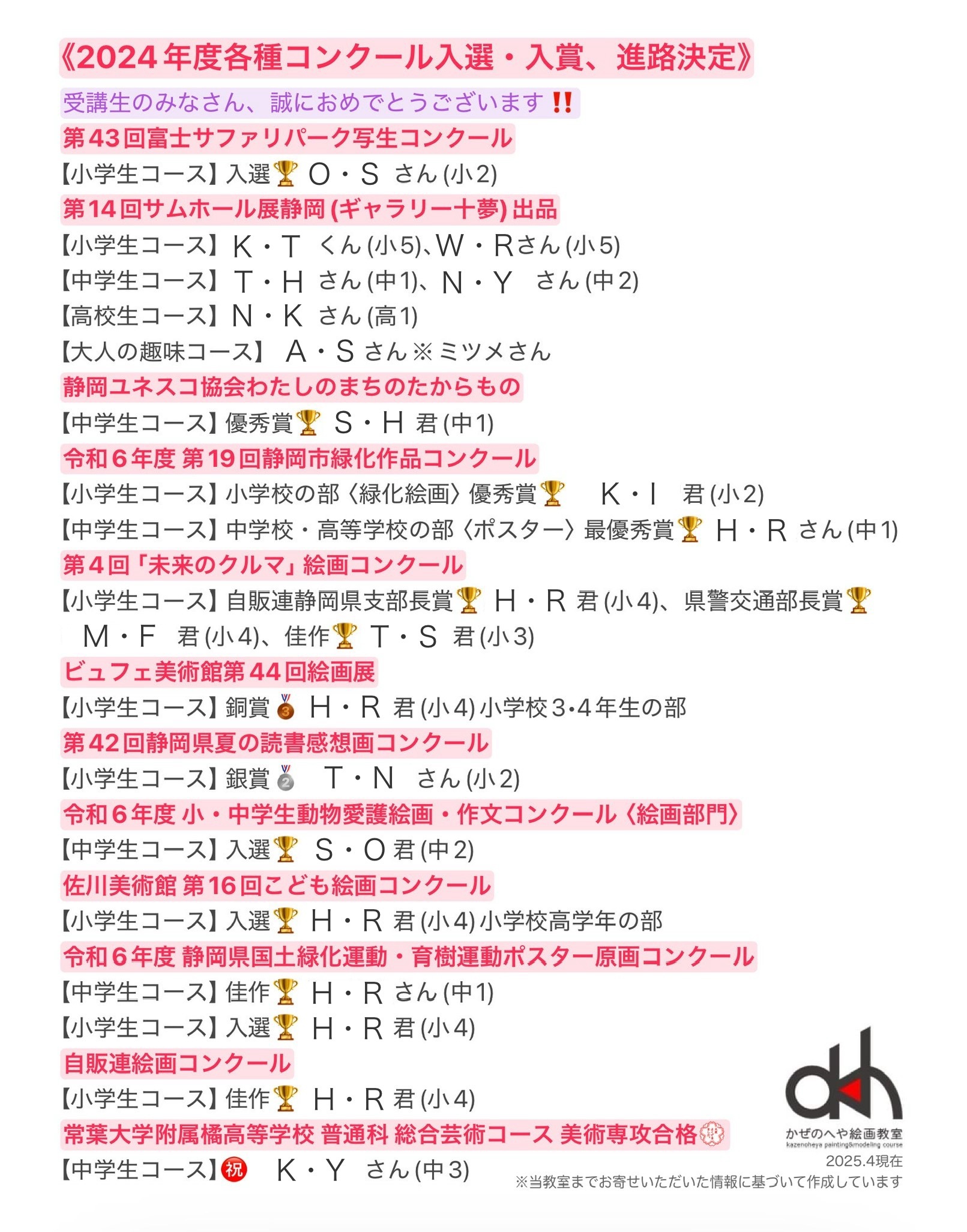 ※「なつやすみ臨時開講」と「なつやすみ特別開講」は、例年コンクール対策で混み合いますので、早めのご予約をおすすめいたします。