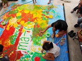 子どもも大人も、無心になって一つのキャンバスに取り組んで…